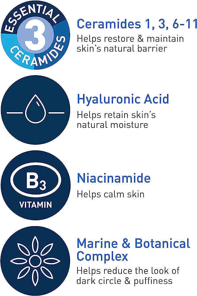 - Ingredients for hydration Hyaluronic Acid and Niacinamide were used in the formulation to aid in skin comfort and moisture retention. Using the continuously releasing nutrients and long-lasting hydration of CeraVe's unique MVE ingredient-delivery technology.