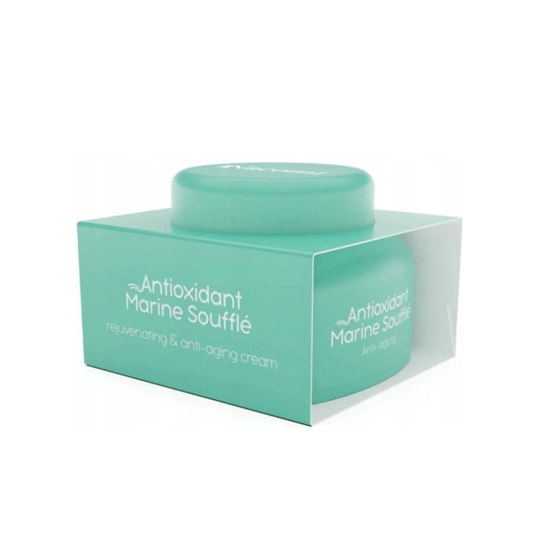 Nacomi Antioxidant Marine Souffle Rejuvenating & Anti-aging Cream 50 Ml Reduces existing lines Prevents wrinkle formation Protects from harmful external factors Blue and green algae extract delivers intense anti-wrinkle and anti-ageing action. It stimulates collagen reconstruction restoring skin firmness and elasticity. Citric acid gently exfoliates, smooths and brightens skin. Vitamin E as a natural antioxidant protects skin from free radicals. Hyaluronic acid and glycoproteins (plant alternative for snail secretion) protect skin from dehydration. Can be used day and night. The richness of active ingredients ensures strong skin regeneration. How to use: Apply a small amount on clean, dry face and neck. Massage in gently.