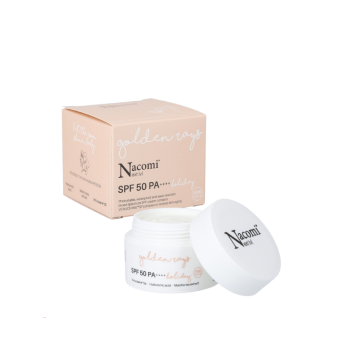 SPF 50 cream that provides the skin with a high level of protection against UVA and UVB radiation. In addition, Nacomi Next Level Cream effectively moisturises, nourishes and accelerates cell regeneration.Ideal for use on the beach and during sunny summer days. How to use: Apply generously on your face and distribute evenly. Leave until absorbed. If you use the cream before make-up, wait at least 10 minutes after application so that the cream has time to absorb into the skin. If your skin is very dry, you can use Nacomi SPF 50 Cream over another moisturiser. In case of direct and prolonged exposure to the sun, reapply the Cream. Use daily, regardless of weather conditions. Results: Moisturised, supple skin protected from harmful UVA and UVB rays.