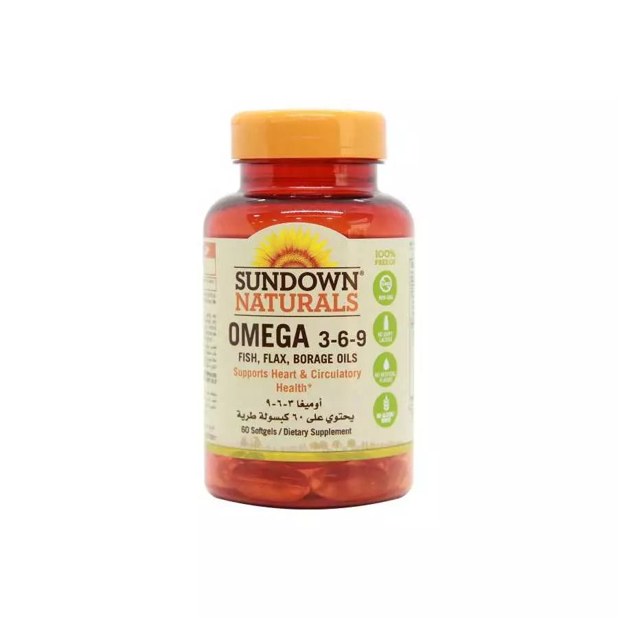 - sundown naturals vegetarian omega 3-6-9 provides you with ?one of the best sources of vegetarian omega-3 - flaxseed oil, in a vegetarian softgel. just one softgel a day supplies an excellent source of omega-3 and also delivers lower doses of omega-6 and 9, from flaxseed and sunflower seed oil. vegetarian omega 3-6-9 supports heart health and healthy circulation, and contains 495 mg of omega-3s.