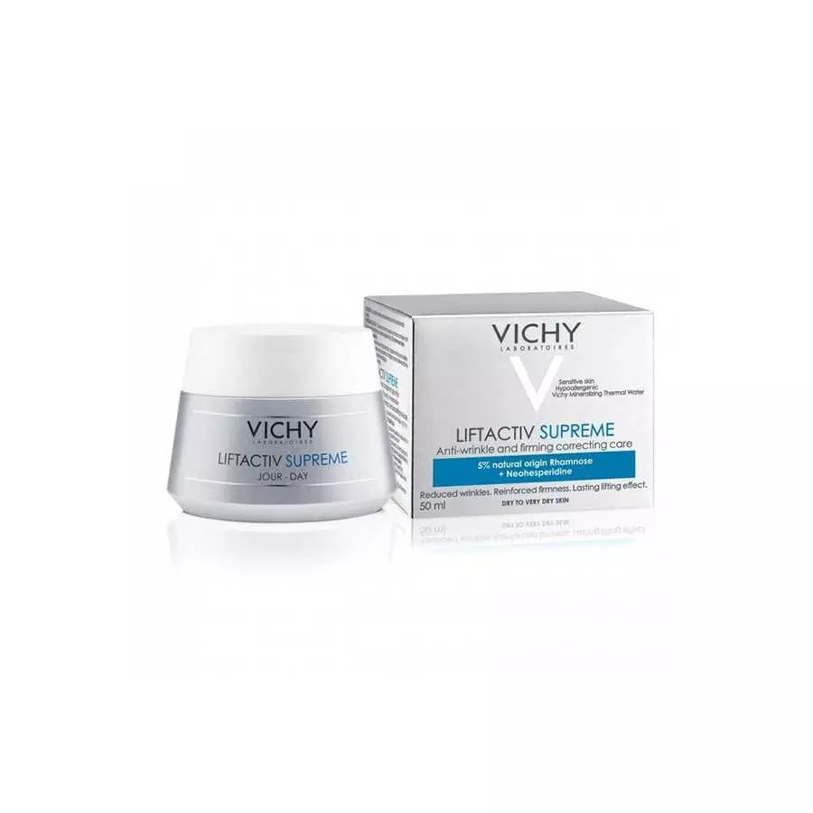 - Vichy LiftActiv Supreme face moisturizer combines 5% Rhamnose, a naturally-derived plant sugar, and Day-Proof Complex to fight continuously against the development of aging signs, especially those that manifest in the evening. It targets stubborn signs of aging like wrinkles and loss of firmness. Enriched with a gentle exfoliating agent for softer and smoother skin. It is demonstrated that with continued use it provides a lasting lifting effect. Instant 3D Optical Correctors simultaneously blur, and illuminate. LiftActiv Supreme face moisturizer ensures younger looking skin all day long. It reinforces the skin capacity to resist daily impacts hour after hour.